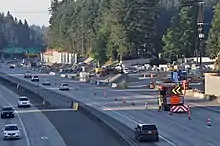 The heat wave strained and damaged the region's infrastructure. It caused the sidewalks to buckle due to thermal expansion of concrete (57 sidewalks were damaged in Edmonton alone).[220][221][222] In Washington and Oregon, damage was even more severe, leading to closures of roads and other inconveniences for drivers, including on some lanes of Interstate 5, as well as some state highways.[223][224][225][226][227] In order to prevent thermal fatigue to Seattle's steel drawbridges, the city announced it would hose them down with cool water.[228]