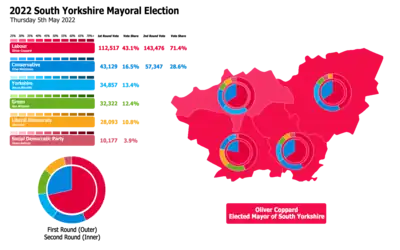 The 2022 South Yorkshire mayoral election took place on 5 May 2022 to elect the Mayor of South Yorkshire, the leader of the South Yorkshire Mayoral Combined Authority. It took place alongside other local elections across the United Kingdom. The Labour Party candidate, Oliver Coppard, won the election in the second round with 71.4% of the vote.[1]