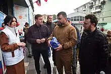 According to Meduza, the Russian authorities planned to hold referendums under the slogan "Together with Russia" (it appeared in the campaign in the Zaporizhzhia Oblast, and a forum of the same name was held in Kherson). The alternative slogan "New Russia", which implied a "new quality" and a stronger Russia, did not please Vladimir Putin and members of the Security Council.[25] The IMA-Consulting group, associated with the first deputy head of the presidential administration, Alexey Gromov, was responsible for the campaign preparations for the referendums.[27][28][29]