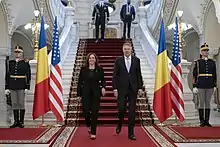 Kamala Harris and Klaus Iohannis at Cotroceni Palace.