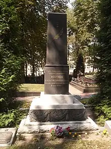 In order to complete the pursuit of the defeated German forces, late on June 28 the STAVKA directed 2nd Belorussian Front to develop a rapid offensive in the direction of Minsk, capture that place, and reach the west bank of the Svislach River no later than July 8, in conjunction with 3rd Belorussian Front. To this end the 222nd formed the basis of 33rd Army's forward detachment, with the 1197th Self-Propelled Artillery Regiment (SU-76s),[61] 873rd Antitank Artillery Regiment, 206th Sapper Battalion, 307th Guards Mortar Regiment, two antiaircraft batteries and a truck battalion.[62] On July 21 Colonel Yurin was rewarded for his leadership of the division in the offensive to date when he was named a Hero of the Soviet Union. Before the medal could officially presented Yurin was killed in action on July 26 while the division was forcing a crossing of the Neman River near the village of Balberishkis, Lithuania. He was buried in Minsk.[63] Yurin was succeeded in command by Col. Grigorii Petrovich Savchuk, who had become a Hero of the Soviet Union in 1943 as a regimental commander in the 181st Rifle Division.[64]