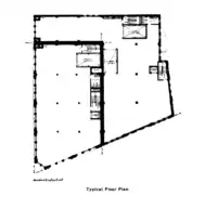 224 West 57th Street has 164,000 square feet (15,200 m2) of usable interior space. This includes 6,000 square feet (560 m2) at ground level, 4,800 square feet (450 m2) in the tenth-floor penthouse, and between 10,000 and 18,000 square feet (930 and 1,670 m2) on each of the other floors.[23] Both constituent structures are supported by an internal steel frame atop concrete foundation piers, with the facade acting as a curtain wall.[2][19]