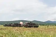 The 25th Armoured Brigade traces its origin to the 20th Armoured Division's 2nd Battle Command (2η Διοίκηση Μάχης, 2η ΔΜΑ), created in June–July 1959 at Thessaloniki. In July 1974, following the crisis with Turkey as a result of the Turkish invasion of Cyprus, the unit moved to the area of Xanthi, where it has remained since.[1] In January 1979, the 2nd Battle Command was reorganized as an armoured brigade, and received its present name. It remained an integral part of the 20th Armoured Division until 2013, when it passed directly to IV Army Corps control, but remaining under the disposal of the 20th Division.[1]