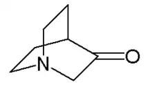 Quinuclidinone is a bicyclic organic compounds with chemical formula HC(C2H4)2(C(O)CH2)N. Its basicity is indicated by the pKa of the conjugate acid, which is 7.2. In contrast quinuclidine is about 100x more basic.[2]