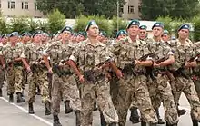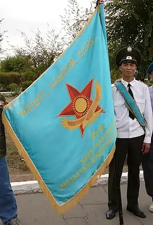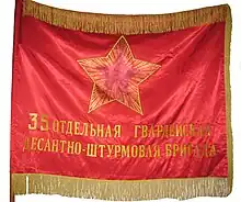 The 35th Guards Air Assault Brigade is an airmobile brigade of the Kazakh Air Assault Forces. It is currently based in Kapchagay. The brigade traces its history back to the Soviet Union as the 111th Guards Airborne Regiment, formed in 1948 as part of the 11th Guards Airborne Division. After the 11th Guards Airborne Division was disbanded in April 1955, the regiment became part of the 105th Guards Vienna Airborne Division.[1] The 105th Guards Airborne Division was broken up in the fall of 1979 and the regiment became the 35th Separate Guards Air Assault Brigade.[2] After the Dissolution of the Soviet Union, the brigade became part of the Armed Forces of the Republic of Kazakhstan and was renamed to the 35th Separate Guards Air Assault Brigade.[3][4]