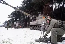 While inactive, the Divisional Artillery Command was consolidated with the division Service Company (excluding for the Military Police Platoon), and redesignated as the Division Artillery. The Division Artillery headquarters and headquarters battery (HHB) was reactivated with the division at Fort Knox on 30 July 1948. On 1 July 1955, it was redesignated the 3rd Armored Division Artillery.[1]
