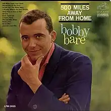 500 Miles Away from Home is a studio album by American country artist, Bobby Bare. It was released in December 1963 via RCA Victor and contained 12 tracks. It was the debut studio album of Bare's career and second with RCA Victor. The album's title track was released as a single in 1963. It became a top ten single on the American country, pop and adult contemporary music charts. The album itself reached the top ten of the American country albums chart. It received positive reception from AllMusic in later years following its original release.