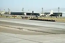 Paratroopers wait at Shiraz Air Base to board a Lockheed C-130 Hercules aircraft for a training mission during Exercise CENTO on 1 August 1977