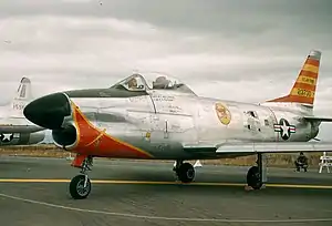 - Aircraft is North American F-86D-40-NA Sabre, serial 52-3730. This plane was assigned to the Colorado Air National Guard in 1960, then savaged at the Military Aircraft Storage and Disposal Center. Baugher, Joe (7 April 2023). "1952 USAF Serial Numbers". Joe Baugher. Retrieved 13 April 2023.