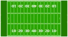 Six-man American football is played on an 80-yard-long (73-m) by 40-yard-wide (37-m) field in most circumstances; the high school rulebook allows games to be held on a normal 100-yd (91-m) by 531⁄3-yd (48.8-m) field used in eleven-man football if the teams and leagues so choose. Furthermore, the game specifies a 15-yard distance (14-m) from the line of scrimmage to gain a first down, instead of the normal 10 yards (9 m).