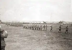 According to Lech Wyszczelski, in May 1920, the 6th Sich Rifle Division was a "very weak tactical relationship (...) it had few cadres enabling it to achieve the status of the Polish division in the long term."[2] From May 8 to June 9, 1920, the 6th Division was in Kyiv as the capital's Ukrainian garrison. The division partook in the Polish-Ukrainian victory military parade on the Khreshchatyk. On 12 June 1920, the 6th Division had 225 officers and 1,720 soldiers (of which 301 were untrained).[3]