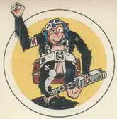 - Approved 17 May 1945. Description: On a yellow disc, border white, edged black, a caricatured black monkey, affronte, wearing light turquoise blue aviator's helmet, white goggles and parachute straps, and brown parachute pack, having a bandage marked with blood about right forearm holding finger of right hand aloft in "o.k." symbol and grasping with left hand a gray aerial machine gun with smoke issuing from muzzle, all casting a black drop shadow toward base. Maurer reverses the approval dates for the 865th and 866th Bombardment Squadrons.