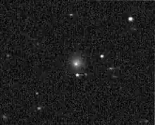 97P/Metcalf–Brewington is a periodic Jupiter-family comet originally discovered by Joel H. Metcalf in 1906 but subsequently lost. A new observation in 1991 by Howard J. Brewington was matched to the 1906 sighting; the orbit was computed and the comet was observed again on its returns to perihelion in 2001, 2011, and 2022.[3]