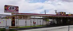 A&W Restaurants (also known as Allen & Wright Restaurants) is an American fast food restaurant chain distinguished by its burgers, draft root beer and root beer floats.[5][6] The oldest restaurant chain in America,[7] A&W's origins date back to 1919 when Roy W. Allen set up a roadside drink stand to offer a new thick and creamy drink, root beer, at a parade honoring returning World War I veterans in Lodi, California.[8][5] Allen's employee Frank Wright partnered with him in 1922 and they founded their first restaurant in Sacramento, California in 1923.[1] The company name was taken from the initials of their last names – Allen and Wright. The company became famous in the United States for its "frosty mugs" – the mugs were kept in a freezer and filled with A&W Root Beer just before being served to customers.