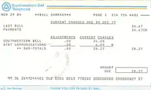 Southwestern Bell Telephone traces its roots to The Missouri and Kansas Telephone Company, which was founded in 1882.[1][2] It was consolidated under a single management unit of the Bell System with Southwestern Telegraph and Telephone Company of Texas-Arkansas, Pioneer Telephone and Telegraph Company of Oklahoma, and The Bell Telephone Company of Missouri—also called The Missouri Bell Telephone Company—on March 1, 1912. These companies comprised the "Southwestern System" of the Bell System. The latter three companies were legally merged into Missouri and Kansas Telephone Company in 1917, which was renamed Southwestern Bell Telephone Company.[3]