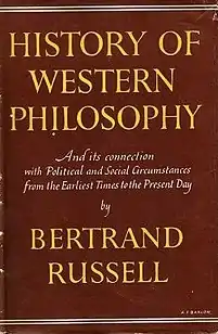 A History of Western Philosophy[lower-alpha 1] is a 1946 book by British philosopher Bertrand Russell (1872–1970). A survey of Western philosophy from the pre-Socratic philosophers to the early 20th century, each major division of the book is prefaced by an account of the historical background necessary to understand the currents of thought it describes.[1] When Russell was awarded the Nobel Prize for Literature in 1950, A History of Western Philosophy was cited as one of the books that won him the award. Its success provided Russell with financial security for the last part of his life. The book was criticised, however, for over-generalizations and omissions, particularly from the post-Cartesian period, but nevertheless became a popular and commercial success, and has remained in print from its first publication.