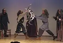 After receiving favorable reviews, the play expanded its Twin Cities production to two performances in 2008 and a three-week (12 night) run in 2009 (at the Paul & Sheila Wellstone Center and Mixed Blood Theater, respectively).[5][6] The 2009 production featured a script with Klingon-language revisions by Chris Lipscombe, a member of the Klingon Language Institute.[7]