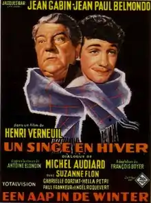 A Monkey in Winter (French: Un singe en hiver) is a 1962 French comedy-drama film directed by Henri Verneuil. It is based on the novel A Monkey in Winter by Antoine Blondin.[2] Set in a Normandy seaside town, it recounts the meeting and parting of two men at odds with life, one an old hotel keeper who dreams of dashing deeds in pre-war China and the other a young advertising executive who imagines he is an incarnation of Hispanic masculinity.