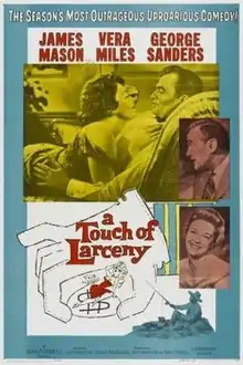 A Touch of Larceny is a 1959 black-and-white comedy film produced by Ivan Foxwell, directed by Guy Hamilton, and starring James Mason, George Sanders and Vera Miles. The film co-stars Harry Andrews, Rachel Gurney and John Le Mesurier, and is based on the 1956 novel The Megstone Plot by Paul Winterton, written under the pseudonym Andrew Garve.