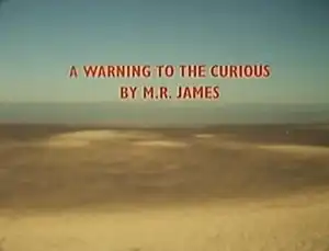 A Warning to the Curious is a 1972 supernatural drama produced by the BBC as the second instalment of its A Ghost Story for Christmas strand.[1] As with the previous instalment, The Stalls of Barchester (1971), it was adapted and directed by Lawrence Gordon Clark and was first broadcast on BBC 1 at 11pm on Christmas Eve 1972.[2] Running at 50 minutes, the drama was based on "A Warning to the Curious", a ghost story by British writer M. R. James, included in his book A Warning to the Curious and Other Ghost Stories first published in 1925.