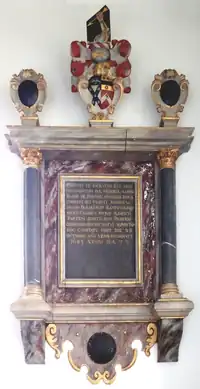 A mural monument to Aaron Baker survives in St Michael's Church, Dunchideock, situated on the north wall of the north aisle chapel. It is inscribed in Latin as follows: