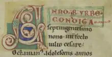 Anno ab urbe condita, rubricated and with a decorated initial, from the medieval Chronicle of Saint Pantaleon