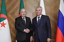 On 13 June 2023, Tebboune started a three-day visit to Russia.[61] During a meeting with Russian President Vladimir Putin, they pledged to deepen the "strategic partnership" between Russia and Algeria.[62]