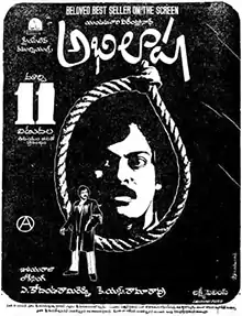 Abhilasha (transl. Desire) is a 1983 Indian Telugu-language thriller film directed by A. Kodandarami Reddy and produced by K. S. Rama Rao. The film stars Chiranjeevi and Raadhika while Rao Gopal Rao and Gollapudi Maruti Rao play vital roles and the music is composed by Ilaiyaraaja. An adaptation of Yandamuri Veerendranath's novel of the same name, it revolves around a young lawyer striving to end capital punishment in India, but gets himself entangled in a murder case.[3][4]