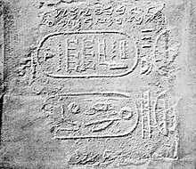The Abibaʻl Inscription in Phoenician letters. The Egyptian hieroglyphs are the cartouches of Sheshonq I