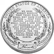 - "Abraham Lincoln Commemorative Silver Dollar". United States Mint. Retrieved June 11, 2019.