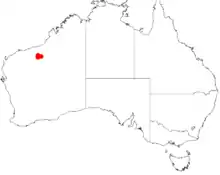 It is sparsely distributed around the small town of Nullagine to the north of Newman in the Pilbara region of north western Western Australia. It is often situated amongst rocky hills, rises and slopes in skeletal sediments and soils of conglomerate. The shrub is usually part of spinifex communities associated Eucalyptus and other Acacia species.[1]