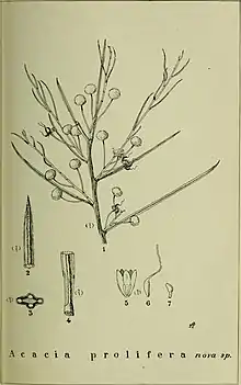 - "FloraBase Name Currency Search: Acacia prolifera". FloraBase. Retrieved 2018-12-19.