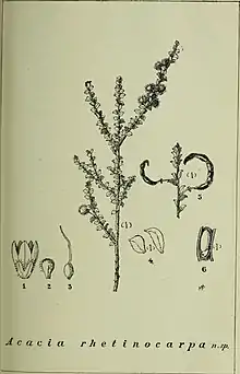 - "Acacia rhetinocarpa". World Wide Wattle. Western Australian Herbarium. Retrieved 2 June 2019.
