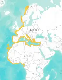 The scale-rayed wrasse, Acantholabrus palloni, is a species of wrasse native to the eastern Atlantic Ocean where it occurs from Norway to Gabon (including the various eastern Atlantic island groups) and in the Mediterranean Sea and the Adriatic Sea. This species can be found on reefs at depths of from 30 to 500 m (98 to 1,640 ft). It can reach a length of 25 cm (9.8 in). It is a commercially important food fish. It is currently the only known member of its genus.[2]
