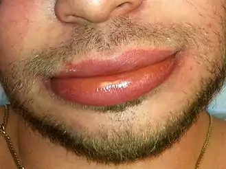 Acquired C1 esterase inhibitor deficiency, also referred to as acquired angioedema (AAE), is a rare medical condition that presents as body swelling that can be life-threatening and manifests due to another underlying medical condition.[1]: 153 The acquired form of this disease can occur from a deficiency or abnormal function of the enzyme C1 esterase inhibitor (C1-INH). This disease is also abbreviated in medical literature as C1INH-AAE. This form of angioedema is considered acquired due to its association with lymphatic malignancies, immune system disorders, or infections. Typically, acquired angioedema presents later in adulthood, in contrast to hereditary angioedema which usually presents from early childhood and with similar symptoms.[2]