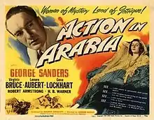 Action in Arabia (also known as Danger in Damascus and International Zone) is a 1944 drama film directed by Leonide Moguy and starring George Sanders and Virginia Bruce.[1] The film was based on the novel The Fanatic of Fez by M. V. Heberden.[2] Action in Arabia was written by Philip MacDonald and Herbert J. Biberman. The supporting cast includes Gene Lockhart and Robert Armstrong, and the plot involves trouble and intrigue with the Nazis in Damascus, who scheme to seize control of the Suez Canal.