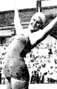 ![]() Adele Price, limbering up before diving, January 1954 | ||||||