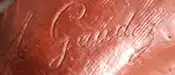Gaudez was born in Lyon, France, on 2 February 1845. He was a pupil of Francois Jouffroy at the École des Beaux-Arts in Paris in 1862. He made his debut at the Paris Salon in 1864.[1] Gaudez worked almost exclusively in bronze and he produced a wide array of sculptures, ranging from genre subjects to military and patriotic themes.[2] His earlier work was mostly of a classical nature[3] but in the latter part of his career he produced some sculpture that can be categorized as art nouveau.