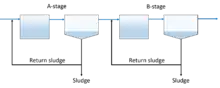 The adsorption/bio-oxidation process is a two-stage modification of the activated sludge process used for wastewater treatment. It consists of a high-loaded A-stage and low-loaded B-stage. The process is operated without a primary clarifier, with the A-stage being an open dynamic biological system. Both stages have separate settling tanks and sludge recycling lines, thus maintaining unique microbial communities in both reactors.