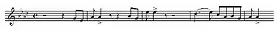 This theme is accompanied by a counter-melody in the horns which resembles Gershwin's "I Got Rhythm" (this premiered on October 14, 1930 – only a few weeks before Still began drafting the Afro-American Symphony). The counter-melody is expressed by the horns in measures 811 and by the flute and oboe in measures 1215.