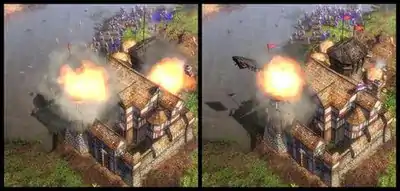 Age of Empires III builds on and introduces new features to the Age of Mythology engine, called Bang! Engine.[23] One new feature is the inclusion of the Havok physics simulation middleware engine[24] on the Windows version and the similar PhysX engine on Mac OS X.[25] This means that many events such as building destruction and tree falls will not be pre-created animations, but will be calculated according to the physics engine, in an innovation for the series. Other graphical features of the game include bloom lighting and support for pixel shader 3.0.[26]
