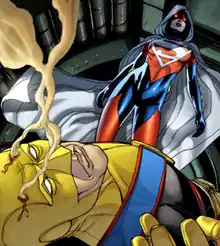 Agent Liberty was apparently killed when Superwoman uses her heat vision on him after she caught him spying on Sam Lane and Lex Luthor.[6] His body was dumped in Metropolis Harbor where it was discovered and brought ashore by a group of boaters. Upon an autopsy it is discovered that Agent Liberty's suit had sent out a distress signal at the moment of his death, leaving clues to who killed him. Metropolis Metacrimes Inspector headed the investigation into Agent Liberty's murder. Before he could remove Liberty's armor, Lucy Lane had Lockwood's body removed from Metropolis City Hospital.[7][8]