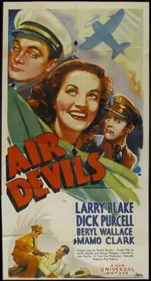 Air Devils is a 1938 American action comedy film directed by John Rawlins, based on an original story, "The Fighting Marines" by Harold Buckley. The film stars Larry J. Blake, Dick Purcell and Beryl Wallace.