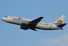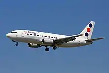 In May 2014, Air Serbia launched their now-defunct[39] charter brand, Aviolet (Serbian Cyrillic: Авиолет),[40] using a fleet of three Boeing 737-300s[41] under Air Serbia's IATA airline code (JU).[39] The majority of Aviolet charter flights were operated during the peak holiday season, which runs from June to September. The first Aviolet-branded flight took off from Belgrade on 4 May 2014, flying to Antalya.[42] As of 2021, Aviolet is defunct as the charter operations were taken over by Air Serbia itself.[39]