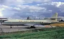 During the Fall of Saigon and the impending invasion of North Vietnam into South Vietnam, Air Viet Nam decided to assist and help all South Vietnamese citizens to escape to neighboring countries. Many of their pilots and crew worked long hours ferrying South Vietnamese citizens to Thailand, Taiwan, the Philippines, and other Southeast Asian countries to escape the invading North Vietnamese army. One Boeing 707 flew to Taipei for the use of former President Nguyen Van Thieu and his wife, and close aides had been flown into exile on a CIA C-118 transport. Thieu was extended the courtesy once in exile of the Boeing jet as he went from first Taiwan, then the United Kingdom, before finally flying onto the United States of America where it was returned to Pan Am from which it had been leased.[2] An Air Vietnam aircraft abandoned at the Songshan Airport was later handed over to a Taiwanese airline.[3]