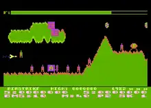 Airstrike is a horizontally scrolling shooter written by Steven A. Riding for the Atari 8-bit family.[1] Having strong similarities to Konami's 1981 Scramble arcade game,[3][4] it was published in 1982 as the first release from UK-based English Software. The company described the game as "Very, very, difficult!" in magazine advertisements,[5] and reviewers agreed with that assessment.