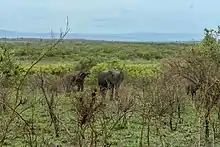 In 1957, black rhinos were introduced from Tanzania. In the 1970s, more than 50 black rhinos lived in the savannah-habitat of the park. Due to widespread poaching, the population declined over the following decades, and the last confirmed sighting was in 2007.[3] In 1986, Masai giraffes were introduced from Kenya. Their population has grown to over 80 individuals in recent years. Around 1990, Akagera was known to have a population of 250 to 300 lions.[2] In the years following the Rwandan Civil War, the entire population was killed by farmers who returned to Rwanda after the War and settled in the park.