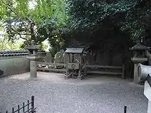 The grounds also contain the Nanamori-zuka (seven mounds), which represent the Heike warriors also lost in the Battle of Dan-no-Ura.