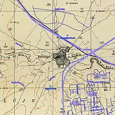 al-Faluja (Arabic: الفالوجة) was a Palestinian Arab village in the British Mandate for Palestine, located 30 kilometers northeast of Gaza City. The village and the neighbouring village of Iraq al-Manshiyya formed part of the Faluja pocket, where 4,000 Egyptian troops, who had entered the area as a result of the 1948 war, were besieged for four months by the newly established Israel Defense Forces. The 1949 Armistice Agreements allowed for a peaceful transfer of those areas outside Gaza to Israeli control, allowing Egyptian troops to remain in Gaza.[5] Following the agreements, the Arab residents were harassed and abandoned the villages. The Israeli town of Kiryat Gat, as well as the moshav Revaha, border the site of the former town.