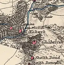 A map by Pierre Jacotin from Napoleon's invasion of 1799 showed the place, named as El Rabsieh.[15] The village mosque dates from the time of Ali Pasha al-Khazindar, father of Abdullah Pasha (i.e. some time before 1818 CE). French explorer Victor Guérin visited the village, which he called "El-Rhabsieh", in 1875.[16] In 1881, the PEF's Survey of Western Palestine (SWP) described al-Ghabisiyya as "a village, built of stone, containing about 150 Moslems, on the edge of the plain, surrounded by olives, figs, pomegranate and gardens; a stream of water near, plentiful of water."[17]
